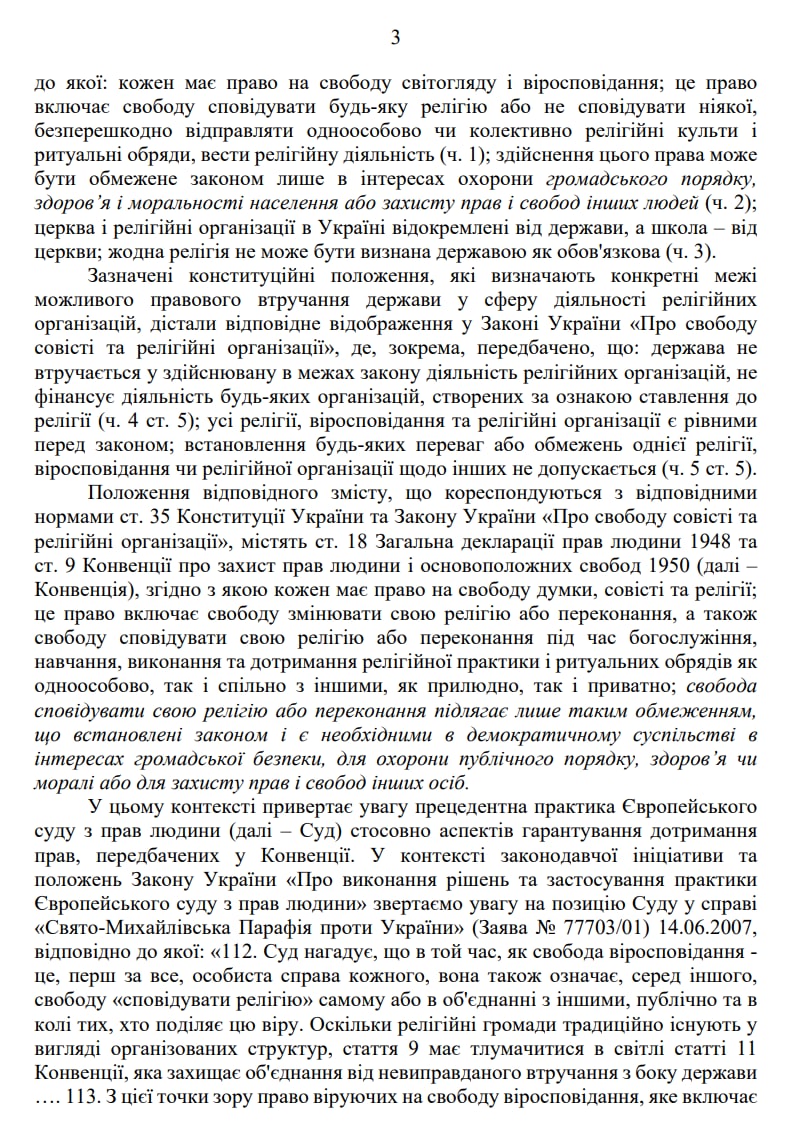 "Предложенная монополия религиозной организации на термин "православный" является недостаточно взвешенной и содержит признаки нарушения ст. 35 Конституции Украины, в том числе прав членов других религиозных организаций", - говорится в выводах.