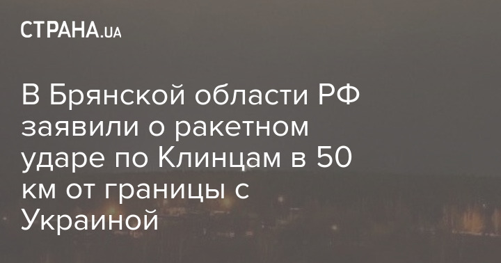 В РФ заявили об обстреле Клинцов Брянской области. Местные власти сообщают, что это был ракетный удар, сработала ПВО, и "отдельные части попали на территорию промзоны".
