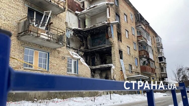 В Горенке Киевской области, двадцать одна семья продолжает жить в полуразрушенном доме без окон, света и тепла - вот уже девять месяцев.