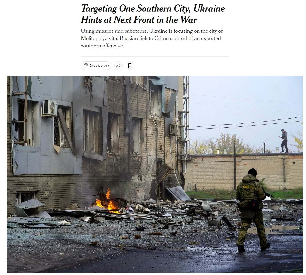09.45 Мелитополь может стать следующим фронтом российско-украинской войны, пишет газета New York Times.