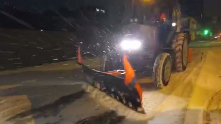 В Киеве работает снегоуборочная техника. Скриншот видео