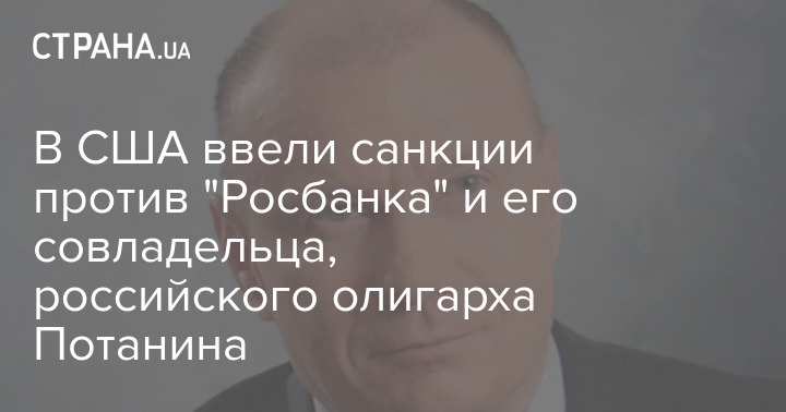 В США ввели санкции против "Росбанка" и его совладельца, российского олигарха Потанина