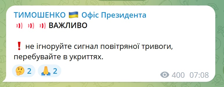 Глава Житомирской ОВА Виталий Бунечко пишет об угрозе массированного ракетного удара.