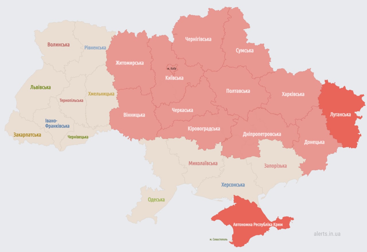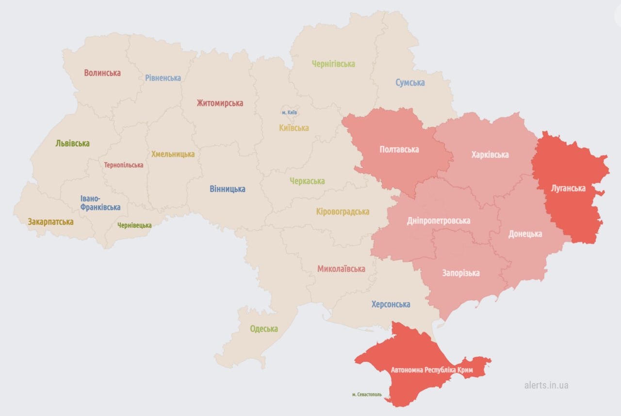 22.10 Воздушная тревога в восточных и части южных областей.