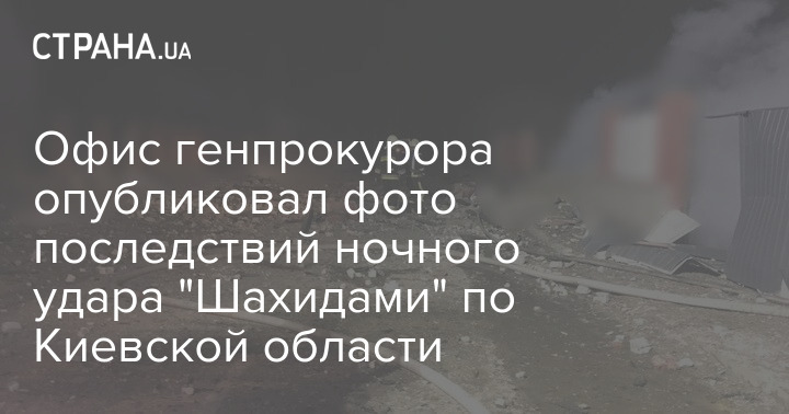 Офис генпрокурора публикует фото последствий ночного удара "Шахидами" по Киевской области.