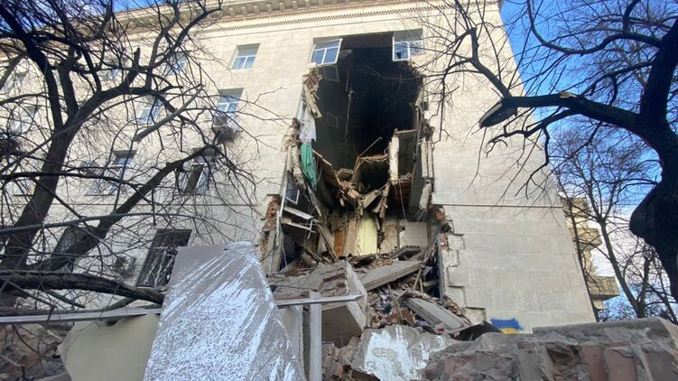 "Страна" публиковала видео последствий удара по зданию Херсонской ОВА.