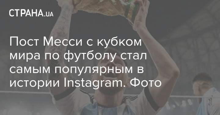 Пост Месси с кубком мира по футболу собрал более 55 млн лайков и стал самым популярным в истории Instagram.