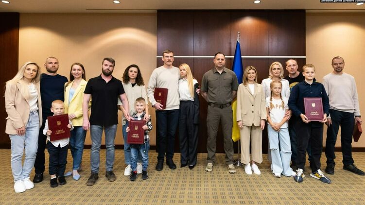 Украинские военные с родными во время вручения госнаград. Фото: president.gov.ua