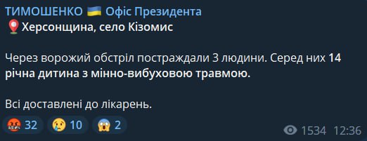 Россияне обстреляли село Кизомыс в Херсонской области. Ранения получили три человека.
