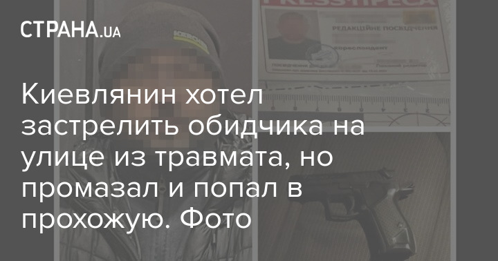 В Киеве мужчина поссорился с незнакомцем на улице и выстрелил в него из травматического оружия, но попал в случайную прохожую.