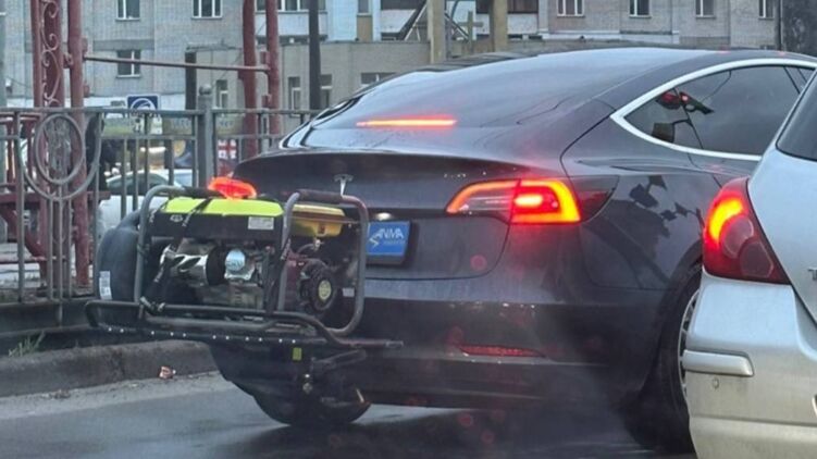 В Сети появилось фото электромобиля "Тесла" с добавленным генератором на улицах Киева.