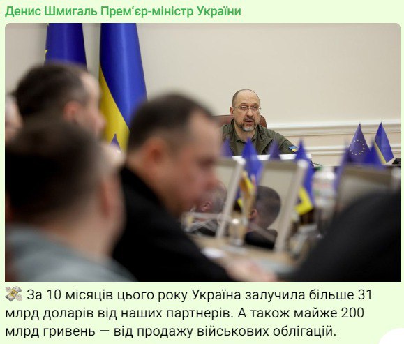 За 10 месяцев 2022 года Украина привлекла более 31 млрд долларов от партнеров, а также почти 200 млрд гривен (менее 6 млрд долларов) – от продажи военных облигаций.