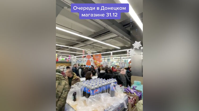В пабликах появилось видео ажиотажа в одном из супермаркетов Донецка 31 декабря.
