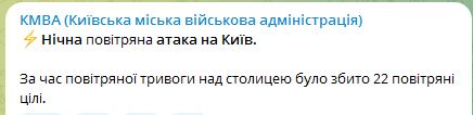 07.55 По уточненным данным за время ночной атаки на Киев были сбиты 22 воздушные цели.