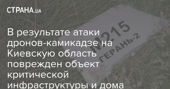 В результате атаки дронов-камикадзе на Киевскую область поврежден объект критической инфраструктуры и дома
