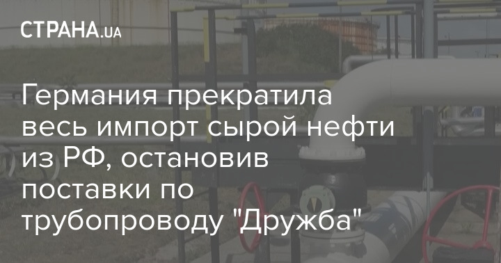 Германия прекратила весь импорт сырой нефти из РФ, остановив поставки по трубопроводу "Дружба"