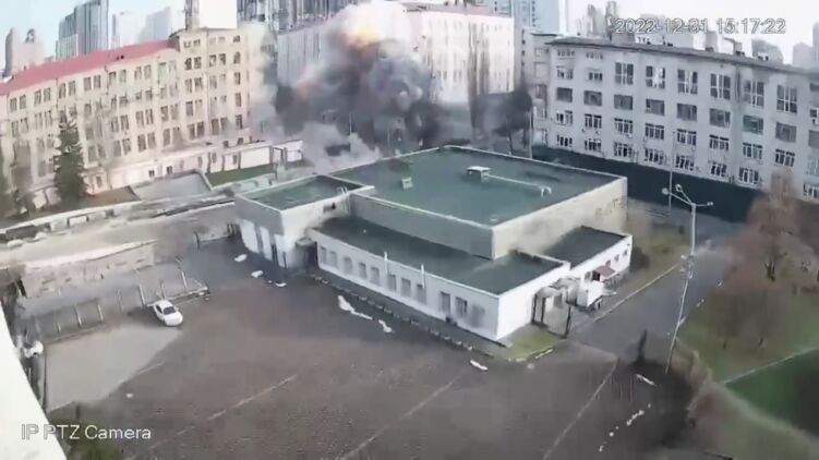 Появилось новое видео обстрела центра Киева 31 декабря. На кадрах с камер наблюдения Дворца "Украина" виден момент прилета в канун Нового года.