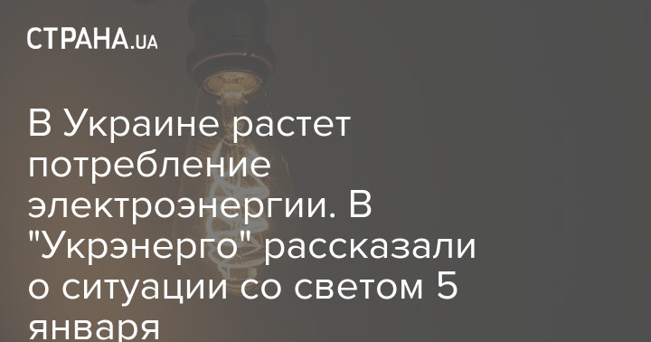 В Украине 5 января продолжает расти потребление электроэнергии из-за постепенного снижения температуры и активизации работы промышленности и бизнеса. До всех областей Украины доведены лимиты потребления, действующие с 8:00 до 23:00.