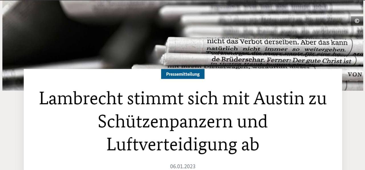 "Вместе с нашими союзниками мы еще раз демонстрируем, что мы едины в поддержке Украины, действуя как единое целое и в тесной координации", - заявила министр обороны Германии Кристина Ламбрехт по итогам телефонного разговора с американским коллегой Ллойдом Остином.