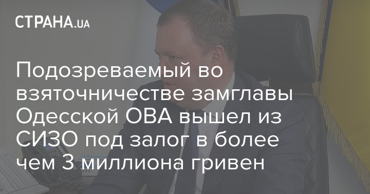 Подозреваемый во взяточничестве замглавы Одесской ОВА вышел из СИЗО под залог в более чем 3 миллиона гривен