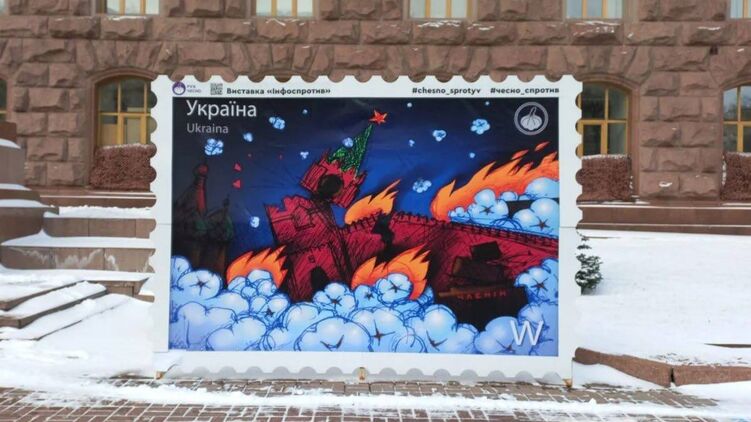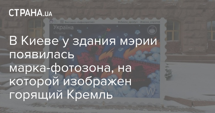 В Киеве у здания мэрии появилась марка-фотозона, на которой изображен горящий Кремль