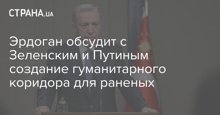 Эрдоган обсудит с Зеленским и Путиным создание гуманитарного коридора для раненых
