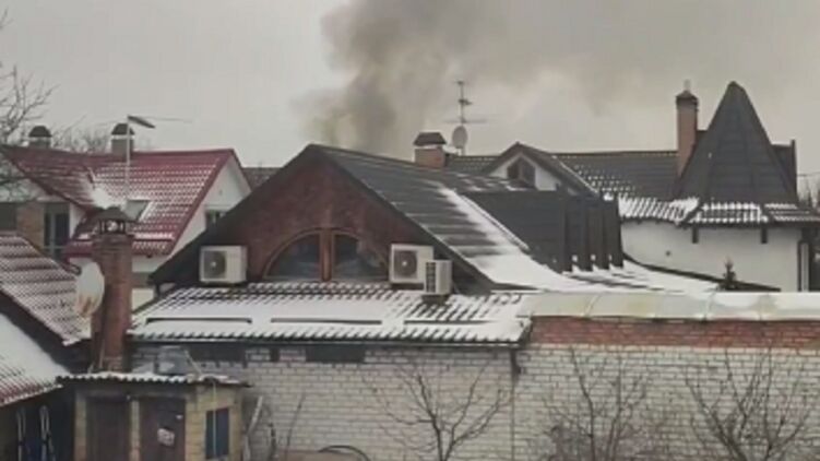 В Киеве на Осокорках горит дом, Видео