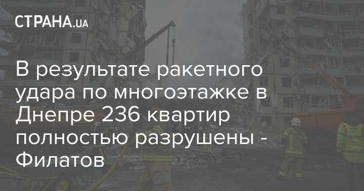 В результате ракетного удара по многоэтажке в Днепре 236 квартир полностью разрушены - Филатов