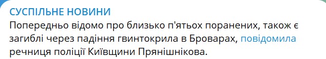 Также Тимошенко назвал случившееся в Броварах трагедией. О погибших не сообщается. При этом, по его данным, растет число пострадавших.