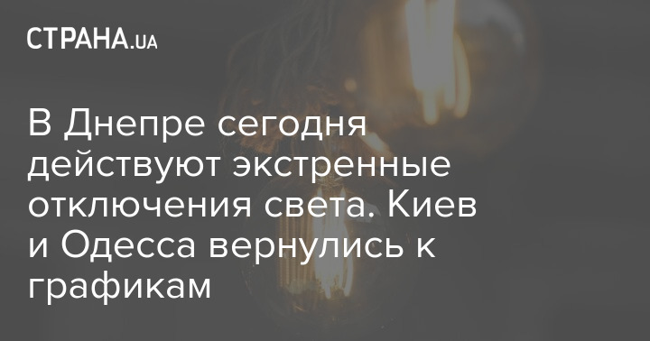 В Днепре сегодня действуют экстренные отключения света. Киев и Одесса вернулись к графикам