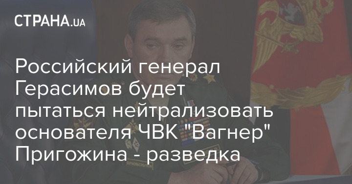 Российский генерал Герасимов будет пытаться нейтрализовать основателя ЧВК "Вагнер" Пригожина - разведка