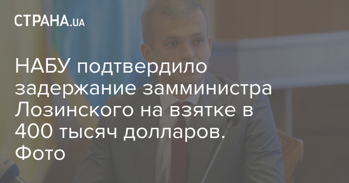 НАБУ подтвердило задержание замминистра Лозинского на взятке в 400 тысяч долларов. Фото