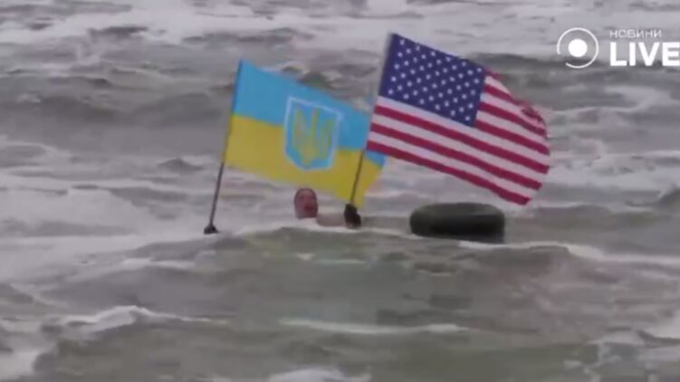 В воскресенье, 22 января, в Одессе местный спортсмен-"морж" Иван Папушенко устроил заплыв с флагами Украины, США и других союзников нашей страны в войне с Россией. Свою акцию одессит посвятил Дню Соборности Украины.