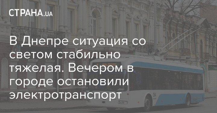 В Днепре с 18:10 23 января остановили электротранспорт из-за отсутствия напряжения на тяговых подстанциях.