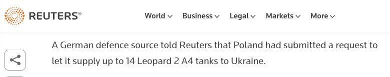 "Все страны, которые имеют эти танки, могут готовить их к отправке Украине", - заявил он.