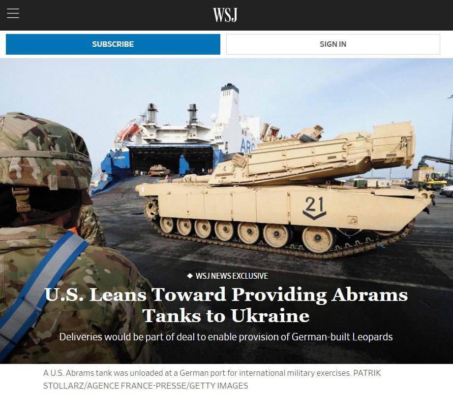 23.13 Президент США Джо Байден завтра объявит о решении поставить Украине танки Abrams.