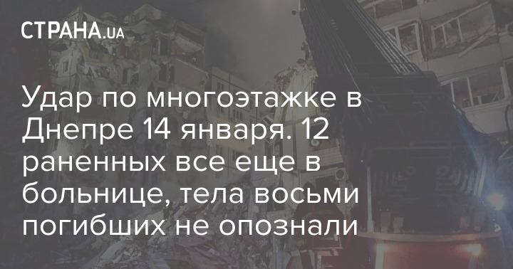 Удар по многоэтажке в Днепре 14 января. 12 раненных все еще в больнице, тела восьми погибших не опознали