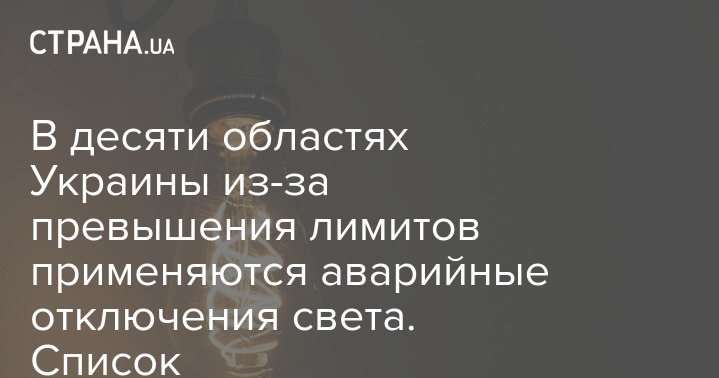 По состоянию на 11:00 пятницы, 27 января, в Харьковской, Донецкой, Запорожской, Кировоградской, Киевской, Черкасской, Житомирской, Волынской, Львовской, Ровенской областях превышены лимиты потребления электроэнергии. В связи с этим в регионах применяются аварийные отключения света.