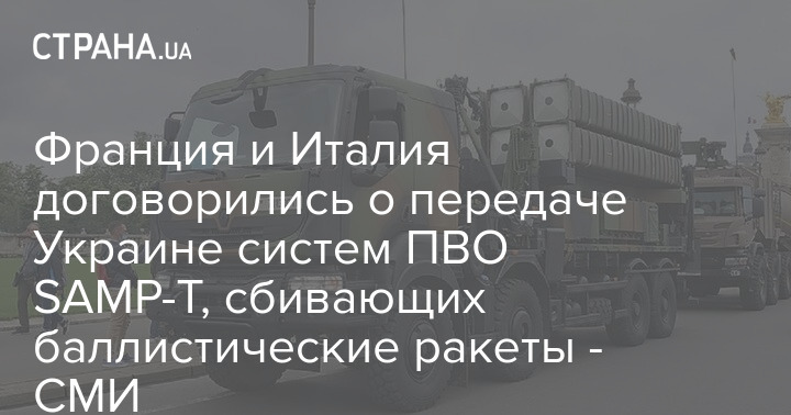 Франция и Италия договорились о совместной передаче Украине систем ПВО SAMP-T. Такая установка способна сбивать как крылатые, так и баллистические ракеты малой дальности, с чем у Украины сейчас есть существенные проблемы.