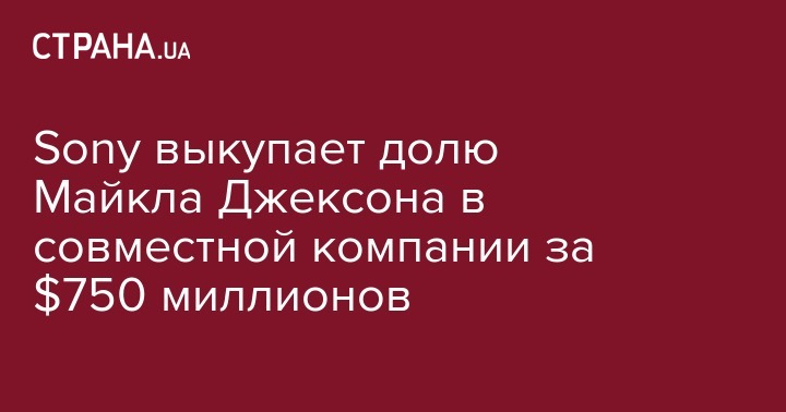 Японская корпорация Sony заключила соглашение с наследниками певца Майкла Джексона о выкупе у них 50-процентной доли в крупнейшем в мире музыкальном издательстве Sony/ATV Music Publishing за 750 млн долларов. Об этом сообщает BBC.