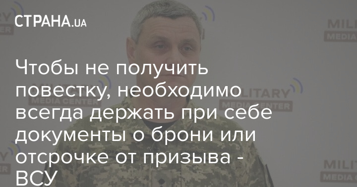 Чтобы не получить повестку, необходимо всегда держать при себе документы о брони или отсрочке от призыва - ВСУ