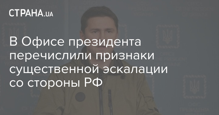 В Офисе президента перечислили признаки существенной эскалации со стороны РФ