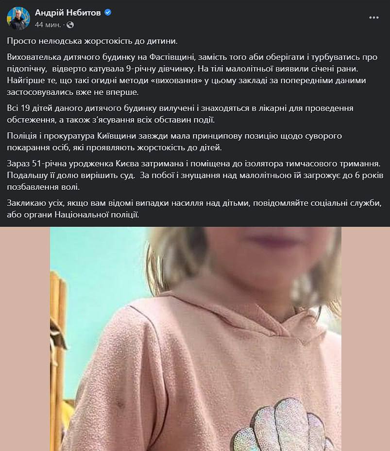 В Киевской области в детском доме под Фастовом громкий скандал. Там воспитатель пытал 9-летнюю девочку.