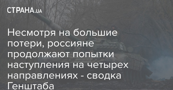 По его данным, враг ведет разведку, на отдельных направлениях готовится к наступлению. Несмотря на большие потери, продолжает попытки наступательных действий на Лиманском, Бахмутском, Авдеевском и Новопавловском направлениях.