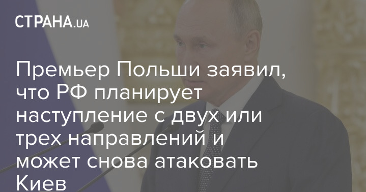 Премьер-министр Польши Матеуш Моравецкий считает, президент РФ Владимир Путин снова попытается атаковать украинскую столицу.