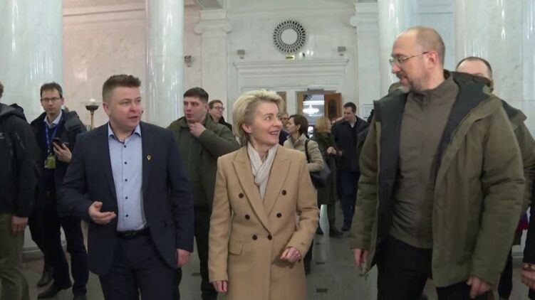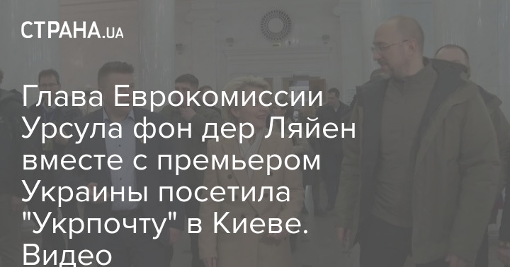 Премьер Украины Денис Шмыгаль опубликовал видео посещения главой Еврокомиссии Урсулой фон дер Ляйен "Укрпочты" в Киеве в своем Telegram-канале.