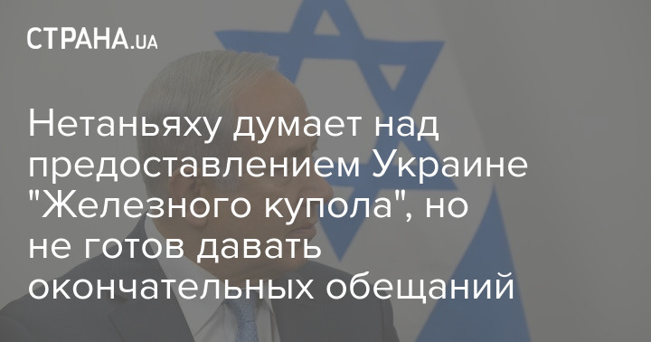 Премьер Израиля Биньямин Нетаньяху заявил, что думает над предоставлением Украине системы ПРО "Железный купол", но не готов "давать окончательных обещаний". И рассматривает также альтернативные "Куполу" варианты.