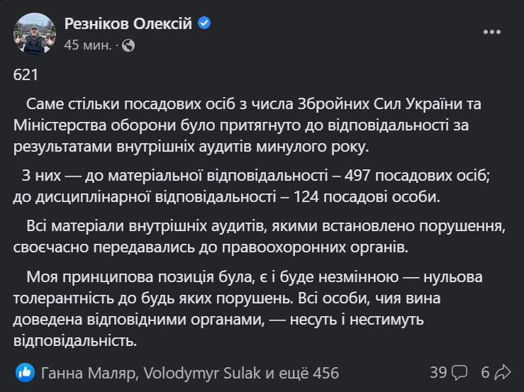 Напомним, что на днях Резников обещал усилить борьбу с коррупцией в Минобороны после обвинений, которые грозили ему отставкой.