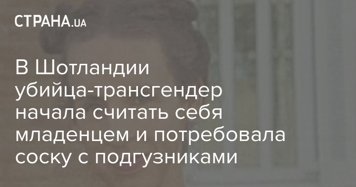 В Шотландии убийца-трансгендер начала идентифицировать себя с младенцем и потребовала в тюрьме подгузники, пустышку и детское питание. Кроме того, она захотела, чтобы тюремный персонал держал ее за руку при выходе из камеры.