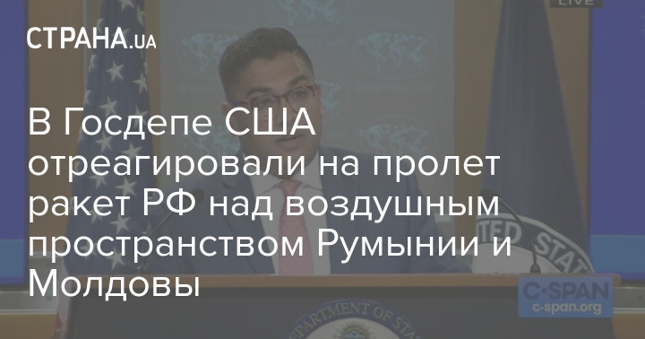 "Сейчас мы не имеем никаких признаков прямой военной угрозы со стороны России против Молдовы или Румынии", - сказал представитель Госдепартамента.